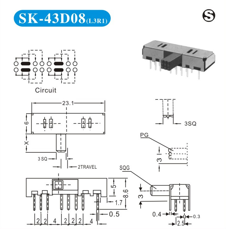 SK-43D08 詳細(xì)資料 產(chǎn)品說明: 技術(shù)指標(biāo): 使用溫度范圍 -20~+70℃ 耐壓 AC250V(50Hz)/min 額定負(fù)荷 DC 50V 0.5A 動作力 250±100gf 接觸電阻 ≤0.05Ω 機(jī)械壽命 10000次 絕緣電阻 ≥100MΩ