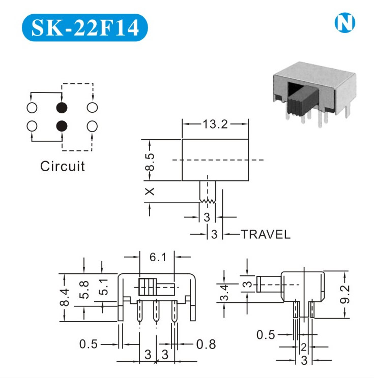 SK-22F14 詳細(xì)資料 產(chǎn)品說(shuō)明: 技術(shù)指標(biāo): 使用溫度范圍 -20~+70℃ 耐壓 AC250V(50Hz)/min 額定負(fù)荷 DC 50V 0.5A 動(dòng)作力 250±100gf 接觸電阻 ≤0.05Ω 機(jī)械壽命 10000次 絕緣電阻 ≥100MΩ