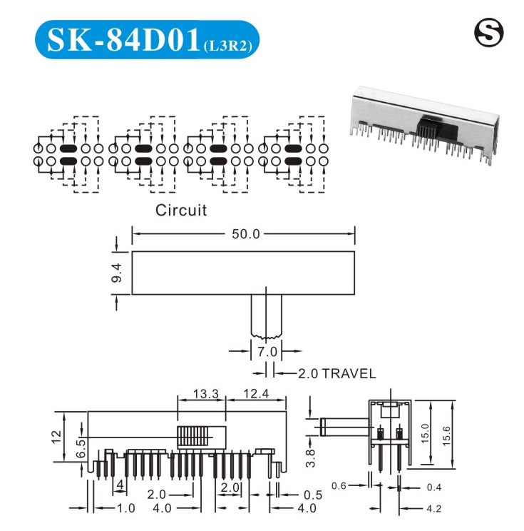 SK-84D01 詳細(xì)資料 產(chǎn)品說明: 技術(shù)指標(biāo): 使用溫度范圍 -20~+70℃ 耐壓 AC250V(50Hz)/min 額定負(fù)荷 DC 50V 0.5A 動作力 250±100gf 接觸電阻 ≤0.05Ω 機械壽命 10000次 絕緣電阻 ≥100MΩ