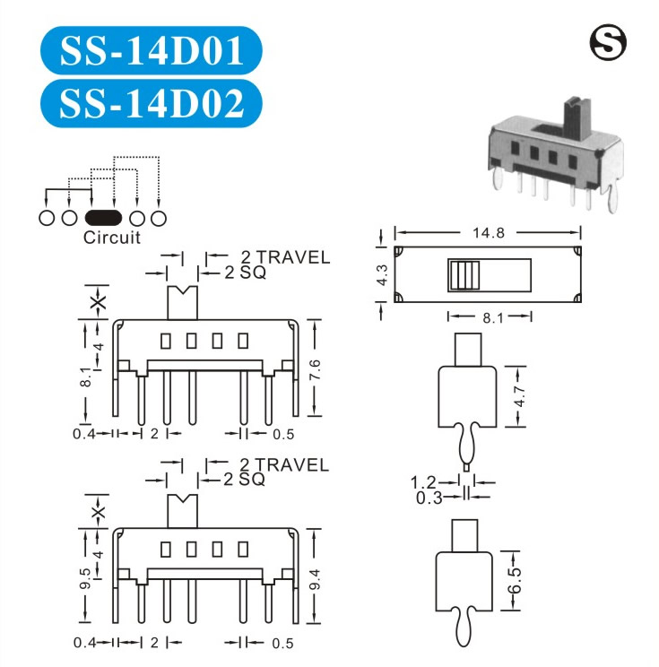 SS-14D01 詳細(xì)資料 產(chǎn)品說明: 技術(shù)指標(biāo): 使用溫度范圍 -20~+70℃ 耐壓 AC250V(50Hz)/min 額定負(fù)荷 DC 50V 0.5A 動作力 250±100gf 接觸電阻 ≤0.05Ω 機械壽命 10000次 絕緣電阻 ≥100MΩ