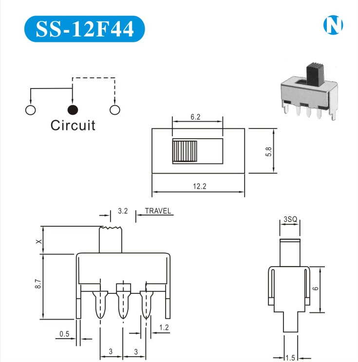 SS-12F44 詳細(xì)資料 產(chǎn)品說明: 技術(shù)指標(biāo): 使用溫度范圍 -20~+70℃ 耐壓 AC250V(50Hz)/min 額定負(fù)荷 DC 50V 0.5A 動作力 250±100gf 接觸電阻 ≤0.05Ω 機(jī)械壽命 10000次 絕緣電阻 ≥100MΩ